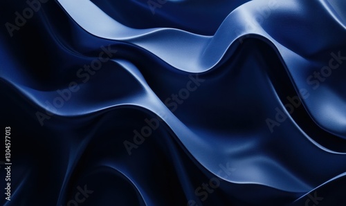 Fototapeta premium Luxurious blue satin fabric with intricate folds, illuminated by diffused light emphasizing its rich and smooth texture for an elegant setup