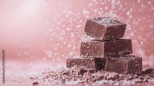 Obraz premium Luxurious chocolate cubes dusted with pink sugar