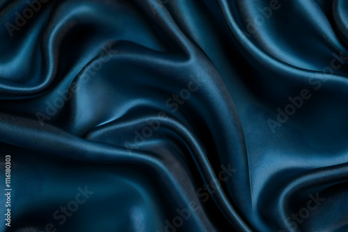 Obraz premium Luxurious dark blue silk fabric with elegant folds and waves.