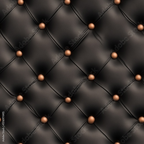 © Sergey, Naklejka premium Luxurious dark brown, almost black, texture of stitched faux leather with a classic quilted pattern and raised metal buttons. This seamless background is perfect for elegant furniture