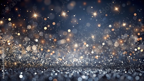 © Four888, Obraz premium Luxurious dark gray background sprinkled with gray and silver glitter particles, creating a mesmerizing, sophisticated, and celebratory atmosphere perfect for festive designs and compositions.