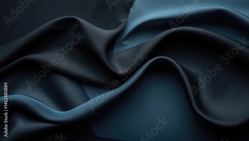 Obraz premium Luxurious dark gray textile backdrop featuring abstract satin folds and...