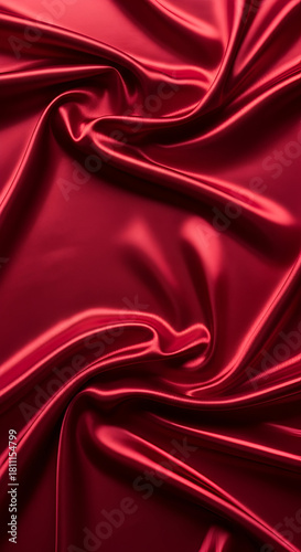 © NurAdli, Obraz premium Luxurious Dark Red Silk Satin Fabric Background with Elegant Drapes