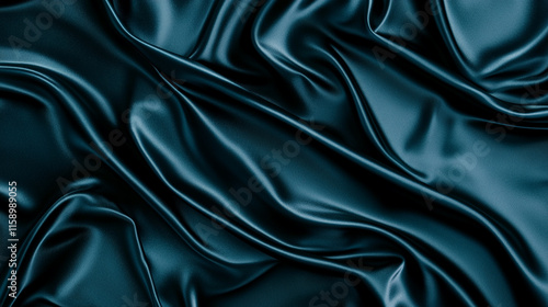 Obraz premium Luxurious dark teal satin fabric draped gracefully creating soft folds and shadows