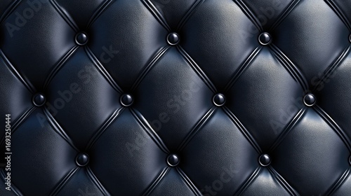 Fototapeta premium Luxurious dark tufted leather upholstery with a classic diamond pattern.