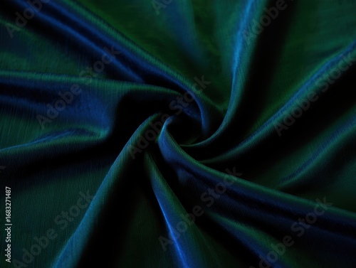 Fototapeta premium Luxurious deep blue and green velvet fabric swirls