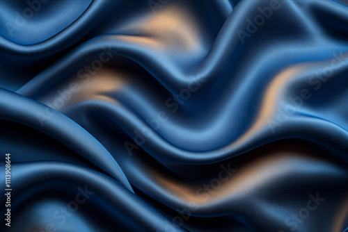 Fototapeta premium Luxurious deep blue silk fabric draped elegantly with soft glimmers of light...