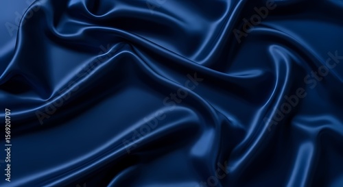Fototapeta premium Luxurious Deep Blue Silk Fabric Texture Elegant Draped Satin Background