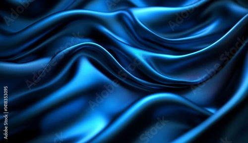 Fototapeta premium Luxurious deep blue silk fabric with elegant waves and folds.