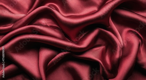 Obraz premium Luxurious deep maroon satin fabric drapes in soft, flowing folds, showcasing...