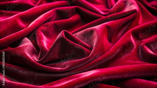 © Md Saiful, Obraz premium Luxurious deep red velvet fabric draped in soft folds and highlights
