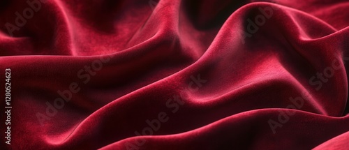 © Usman, Obraz premium Luxurious Deep Red Velvet Fabric with Soft Texture and Flowing Drapes
