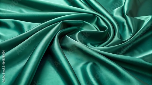 Fototapeta premium Luxurious emerald green silk fabric draped and flowing