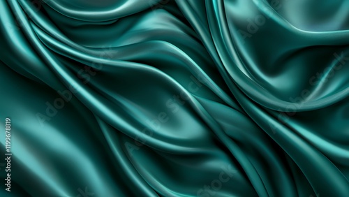 © Moonoy, Obraz premium Luxurious Emerald Green Silk Texture - Abstract Flowing Waves Design