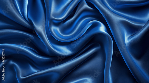 © Odin, Fototapeta premium Luxurious flowing blue satin fabric with smooth folds and soft light