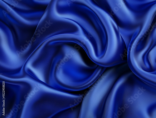 Fototapeta premium Luxurious, flowing blue silk fabric with elegant folds and a glossy sheen, creating a rich and smooth texture.