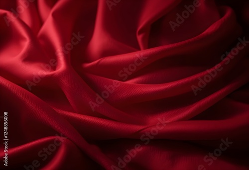 © Sumon, Obraz premium Luxurious Flowing Red Silk Fabric with Deep Folds and Soft Shadows AI Generated