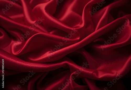 © Sumon, Obraz premium Luxurious Flowing Red Silk Fabric with Deep Folds and Soft Shadows AI Generated