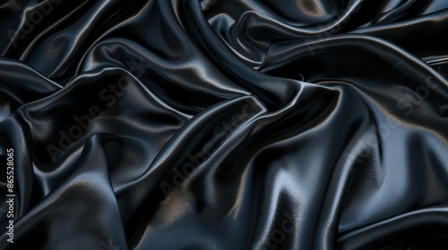 Fototapeta premium luxurious glossy black silk satin fabric texture background elegant dark...