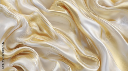 Fototapeta premium Luxurious gold and white silk fabric with elegant folds, soft texture, natural sheen, delicate curves, smooth surface,