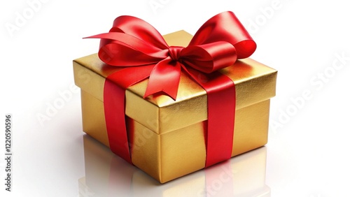 © chaowalit, Fototapeta premium Luxurious Gold Gift Box with Red Ribbon
