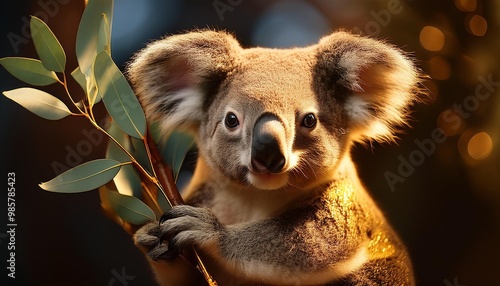 © Adobe, Obraz premium Luxurious gold koala with eucalyptus branch