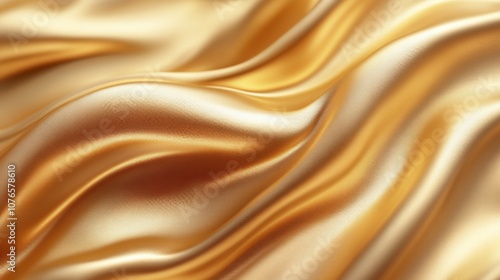 Fototapeta premium Luxurious Golden Satin Fabric Creating Smooth Waves and Textures