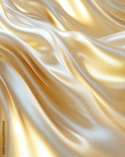 Fototapeta premium Luxurious golden silk fabric with flowing waves and soft textures, perfect...