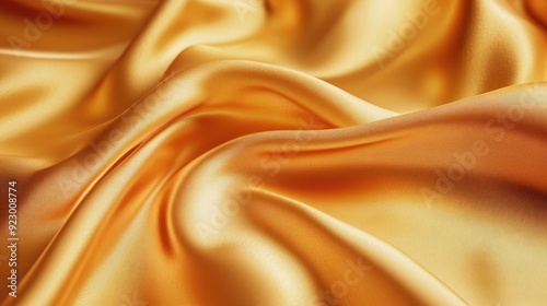 Obraz premium Luxurious Golden Silk Fabric with Smooth Waves and Elegant Texture in Close-Up View