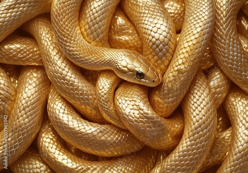 © ANUAR, Obraz premium Luxurious Golden Snake with Intricate Scales