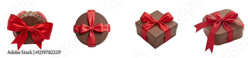© GMeta, Obraz premium Luxurious gourmet chocolate box with red bow perfect for celebrations, cut out collection pack