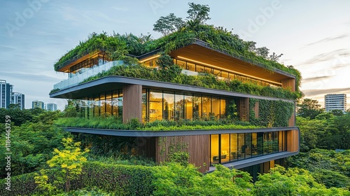Fototapeta premium Luxurious Green Eco Friendly Modern Building Sustainable Architecture Rooftop...