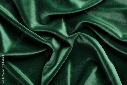 © Purple_Lamp, Obraz premium Luxurious Green Satin Fabric with Elegant Folds and Silky Texture