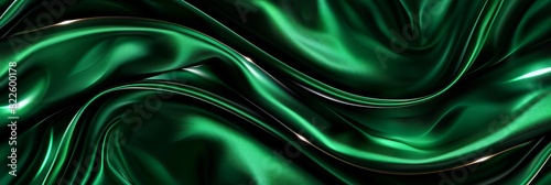Obraz premium Luxurious green silk fabric background with abstract wavy satin texture...