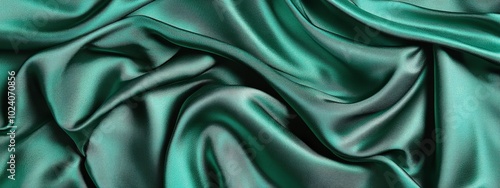Obraz premium Luxurious green silk fabric with smooth flowing folds and shiny texture