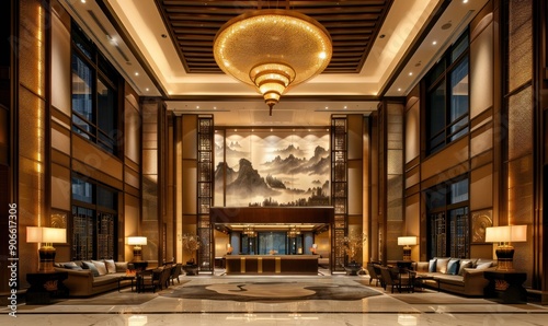Obraz premium Luxurious Hotel Lobby with Oriental Design