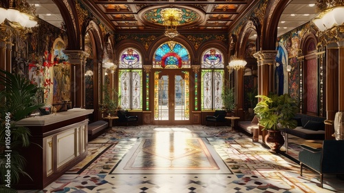 Fototapeta premium Luxurious Hotel Lobby with Stained Glass Windows