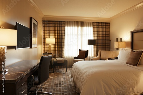 © Daxxt, Fototapeta premium Luxurious hotel room with warm tones