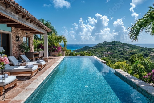 Fototapeta premium Luxurious infinity pool overlooking tropical jungle
