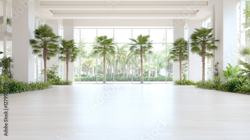 Fototapeta premium Luxurious lobby with palm trees, tropical view