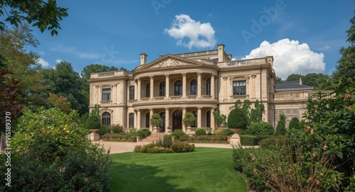 © AkuAku, Obraz premium Luxurious mansion with grand architecture and lush gardens