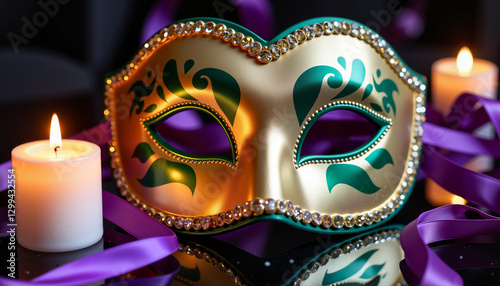 Naklejka premium Luxurious Mardi Gras mask reflecting candlelight, festive celebration