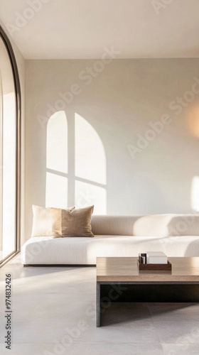 Fototapeta premium Luxurious Mediterranean room interior design with natural lighting, elegant...