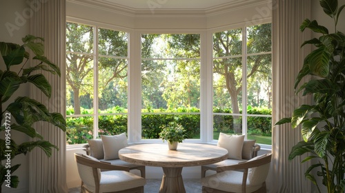 Obraz premium Luxurious Modern Arabian Islamic Kitchen Nook with Plush Seating and Garden...