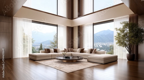 Fototapeta premium Luxurious modern living room with mountain view.