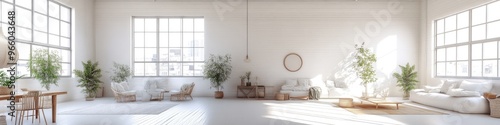 Fototapeta premium Luxurious Modern Living Space with White Panoramic View and Stylish Furniture