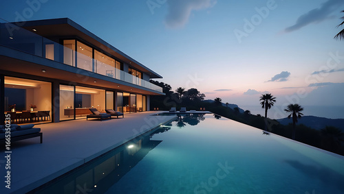 © Nandi, Fototapeta premium Luxurious Modern Villa by the Pool at Twilight