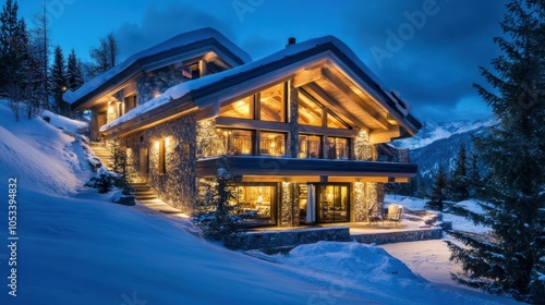 Fototapeta premium Luxurious mountain chalet with panoramic views.