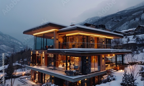 © Іван Ніколов, Obraz premium Luxurious mountain home with a modern design.