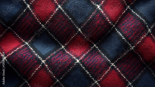 © beldesigne, Naklejka premium Luxurious Navy and Burgundy Tartan Design with Rich Textures